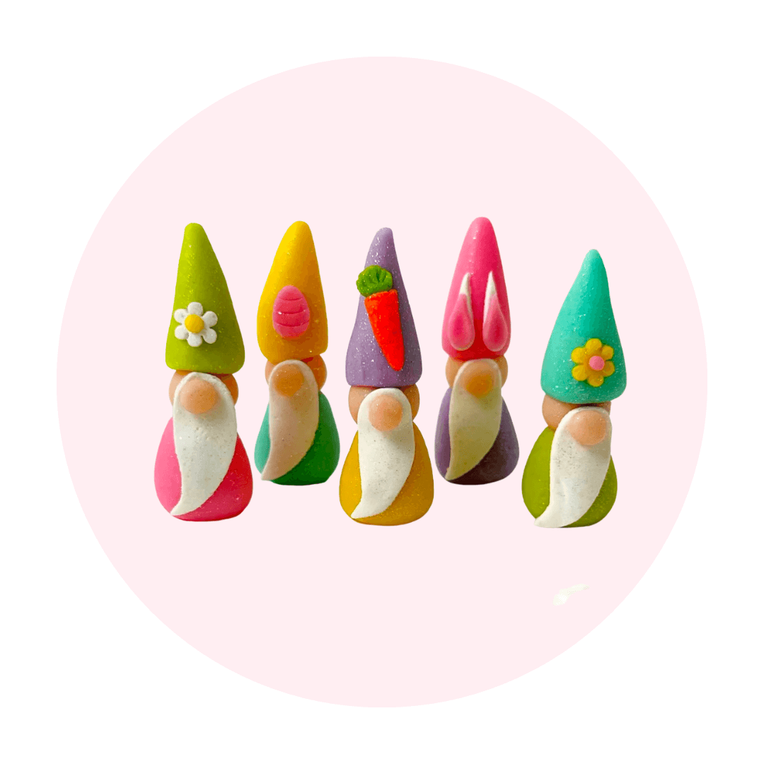 These adorable little Easter gnomes are crafted with extreme care and flawless attention to detail. Melt-in-your-mouth marzipan is formed into five delicious little figurines sporting colourful hats adorned in flowers, eggs, carrots and bunny ears.