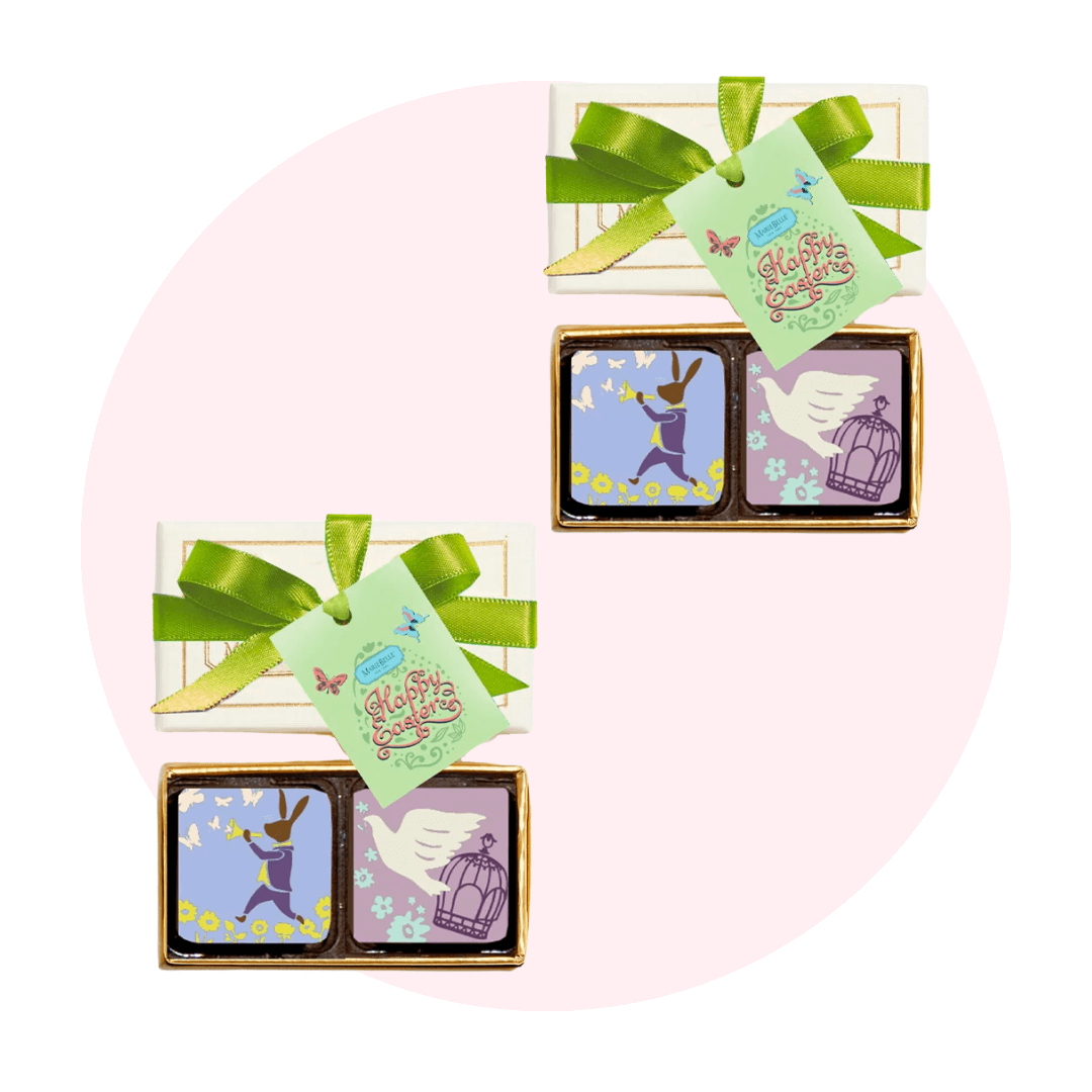 What’s a party without party favours? NYC’s Mariebelle Chocolates come in packs of two-piece boxes featuring a Madagascar chocolate “Singing Bunny” chocolate and a milk chocolate “Spring’s Songbird.”