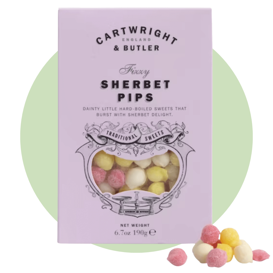 These little candies by British brand Cartwright & Butler fizz with flavour. The package describes them as “dainty little hard-boiled sweets that burst with sherbet delight,” which is an apt description – a crunchy exterior gives way to a soft sherbet-flavoured centre.