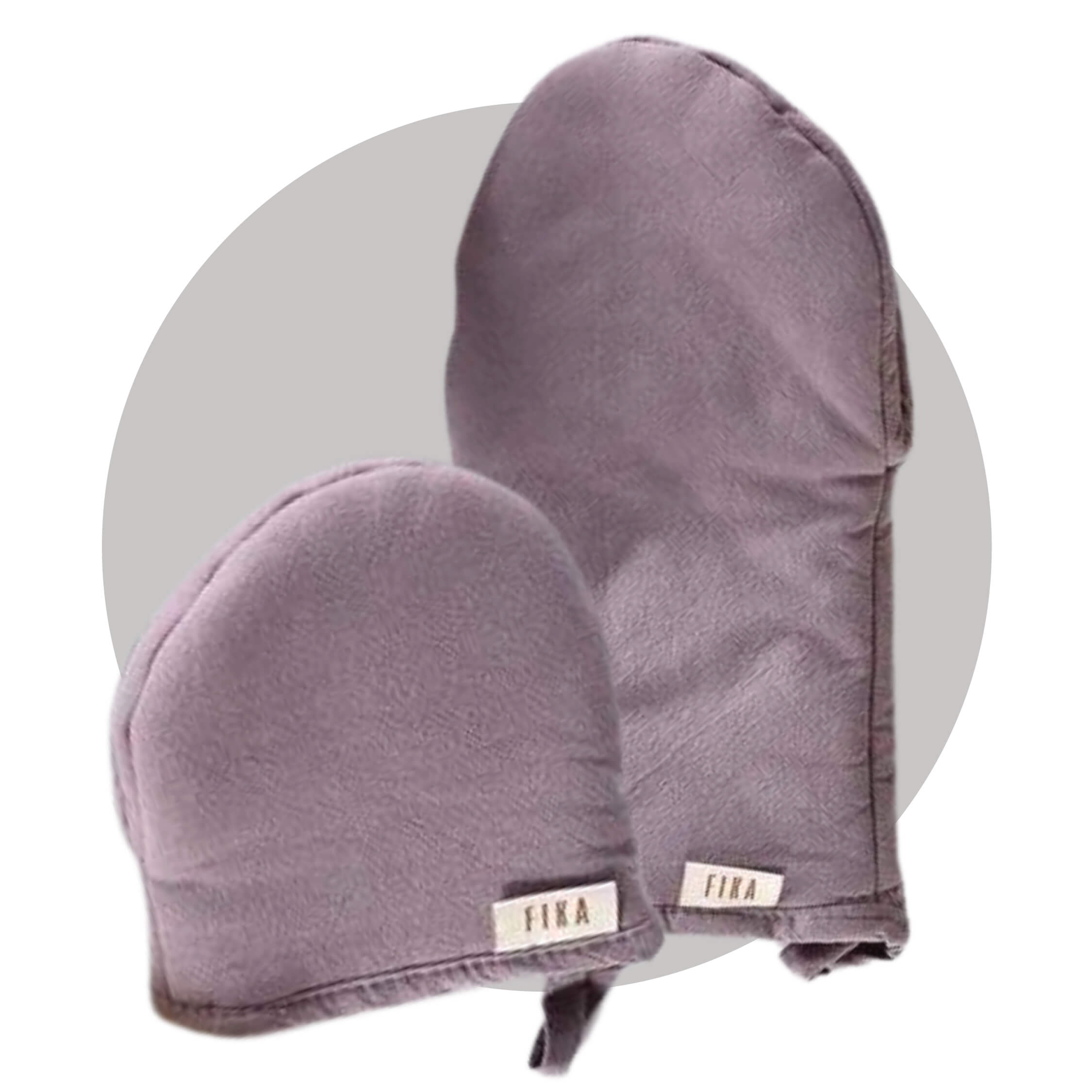 FIKA is mostly known for their Swedish-inspired cookware, and their oven mitts are similarly versatile and stylish. It comes in three colours: light pink, beige or dark gray. The pair includes a classic full-size oven mitt, and a smaller one to use for lifting hot lids.