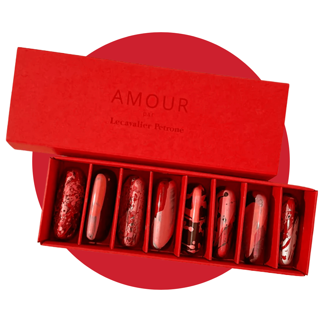 Montreal’s Lecavalier Petrone’s stunning ‘Saint-Valentin’ Coffret Amour contains eight beautiful chocolate bonbons in flavours like Habanero Hazelnut Praline and Sansho Pepper Ganache.