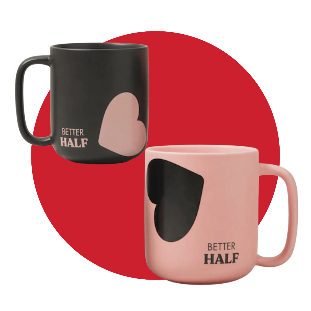 Even if you can’t share morning coffees with your boo, Indigo’s Better Half mugs ensure you can both start your days the same way: caffeinated and feeling cared for. They’re porcelain and microwave-and-dishwasher safe.