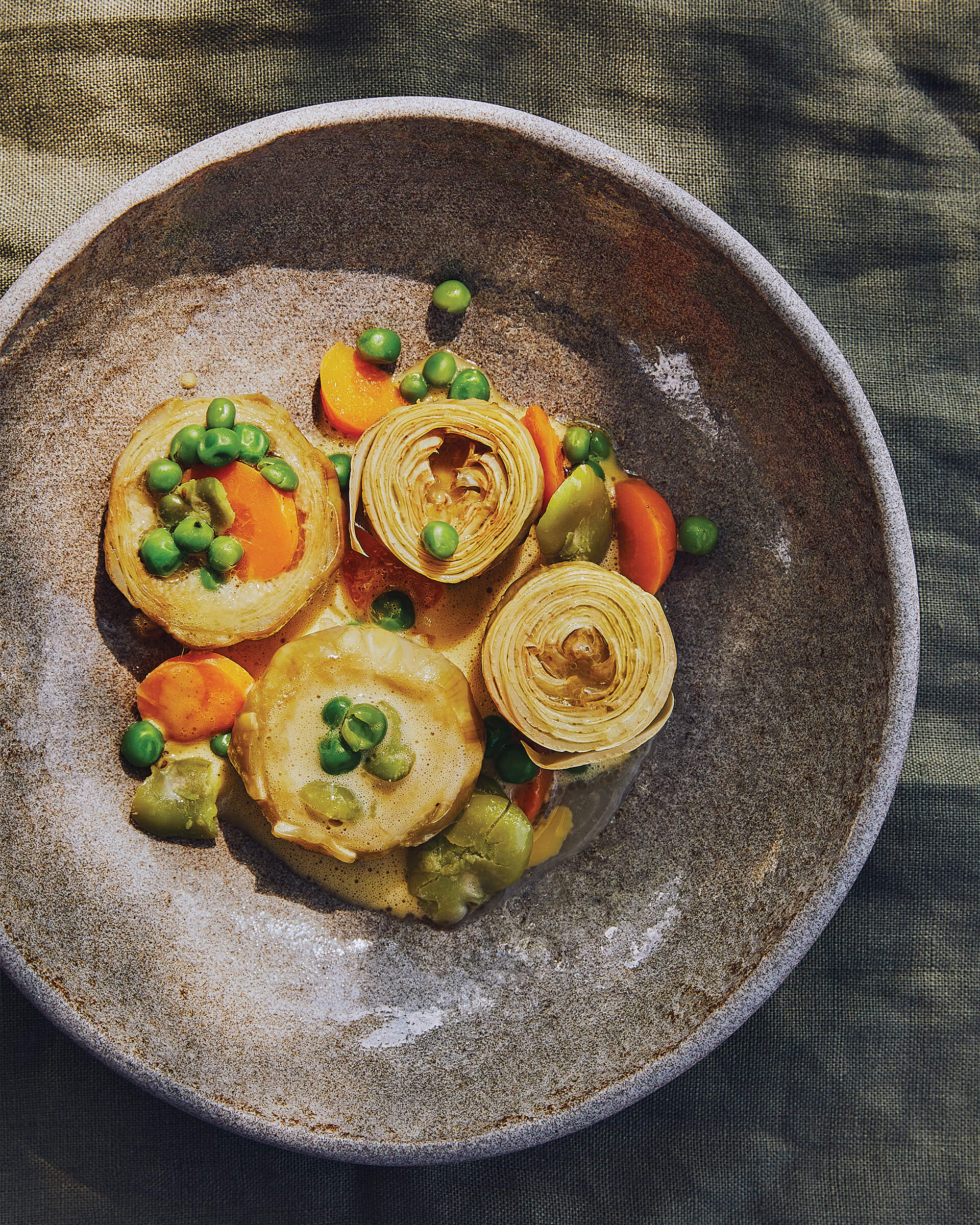 Bika’s Artichokes With Green Peas, Broad Beans and Sabayon of Verjus