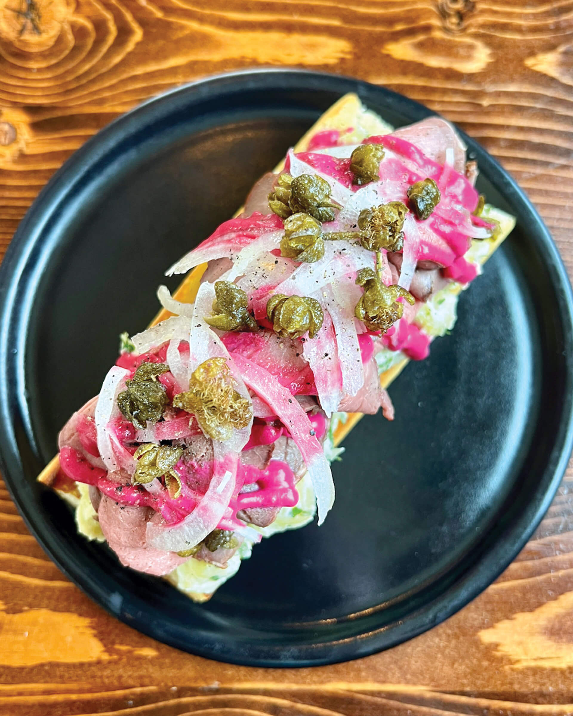 Open-Faced Roast Beef and Beet Sandwich