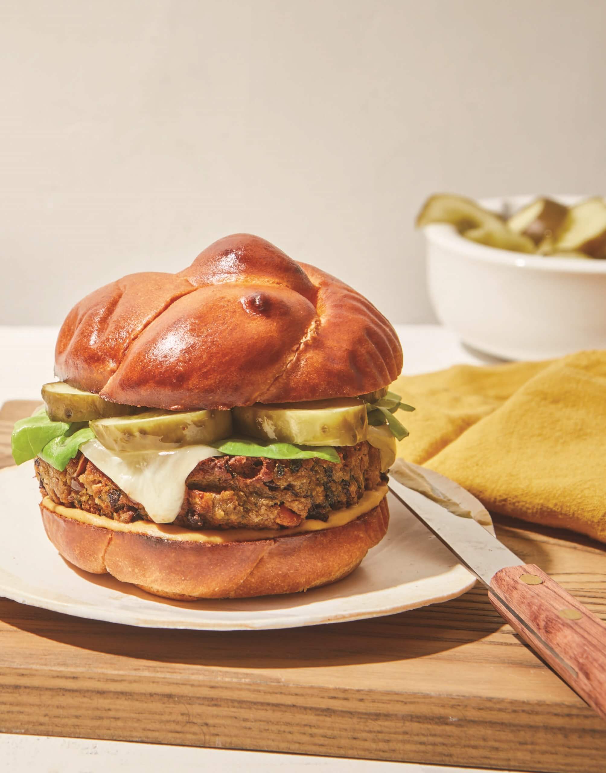 Squash and beans are a combination I always love in soups, salads, tacos and burritos, and it’s no surprise that the two ingredients also work great together in a veggie burger. These burgers are excellent with a slice of mozzarella or melty vegan cheese, which adds richness and some extra structural support on a bun. Also, since the recipe only calls for half of a butternut squash, you might as well roast the other half at the same time and use it for soup. –Lukas Volger