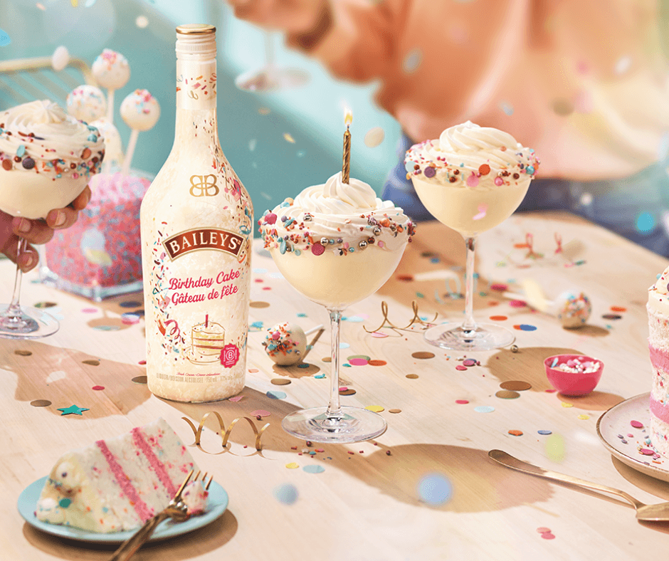 Baileys Birthday Cake Irish Cream, available nationwide (excluding Quebec) for those of legal drinking age wherever spirits-based beverages are sold.