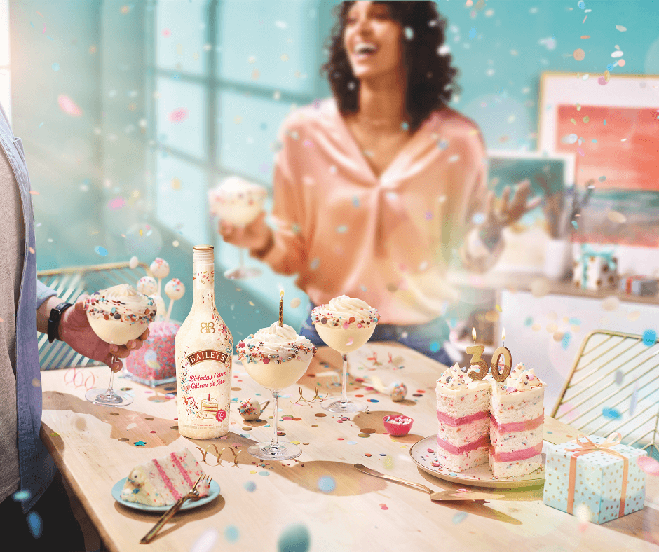 Baileys Birthday Cake is a treat unlike any other. The sweet flavours of freshly-baked sponge cake are blended with the familiar flavours of Baileys Original Irish Cream – Irish dairy cream and a touch of rich chocolate and vanilla. The result is a deliciously creamy treat that’s the perfect capstone to any celebratory meal. Enjoy it over ice or elevate your next home-baked funfetti cake by whisking a few tablespoons of Baileys Birthday Cake into the cake mix. Or make a birthday-themed shot by rimming a shot glass of chilled Bailey Birthday Cake with frosting and colourful sprinkles.