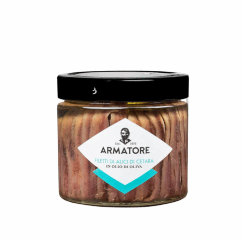 Following ancient salting processes, Armatore selects only the largest anchovies from the Amalfi Coast to be salted in terzigni, chestnut barrels for at least 8 months, then preserved in olive oil.