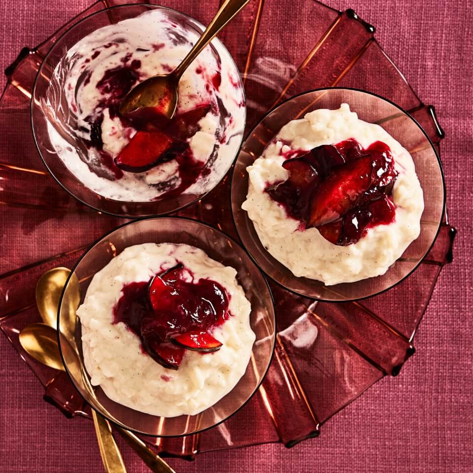 Rice pudding is a simple sweet or savoury dish found in many parts of the world. Within each culture and country, recipes will vary tremendously, from cooking methods to ingredients. We’ve based our rice pudding on a classic English-style of recipe, and have replaced the cream with coconut milk. Using a vanilla pod adds a subtle flavour (the pod is removed before serving). Top the rice pudding with homemade or ready-made jam.