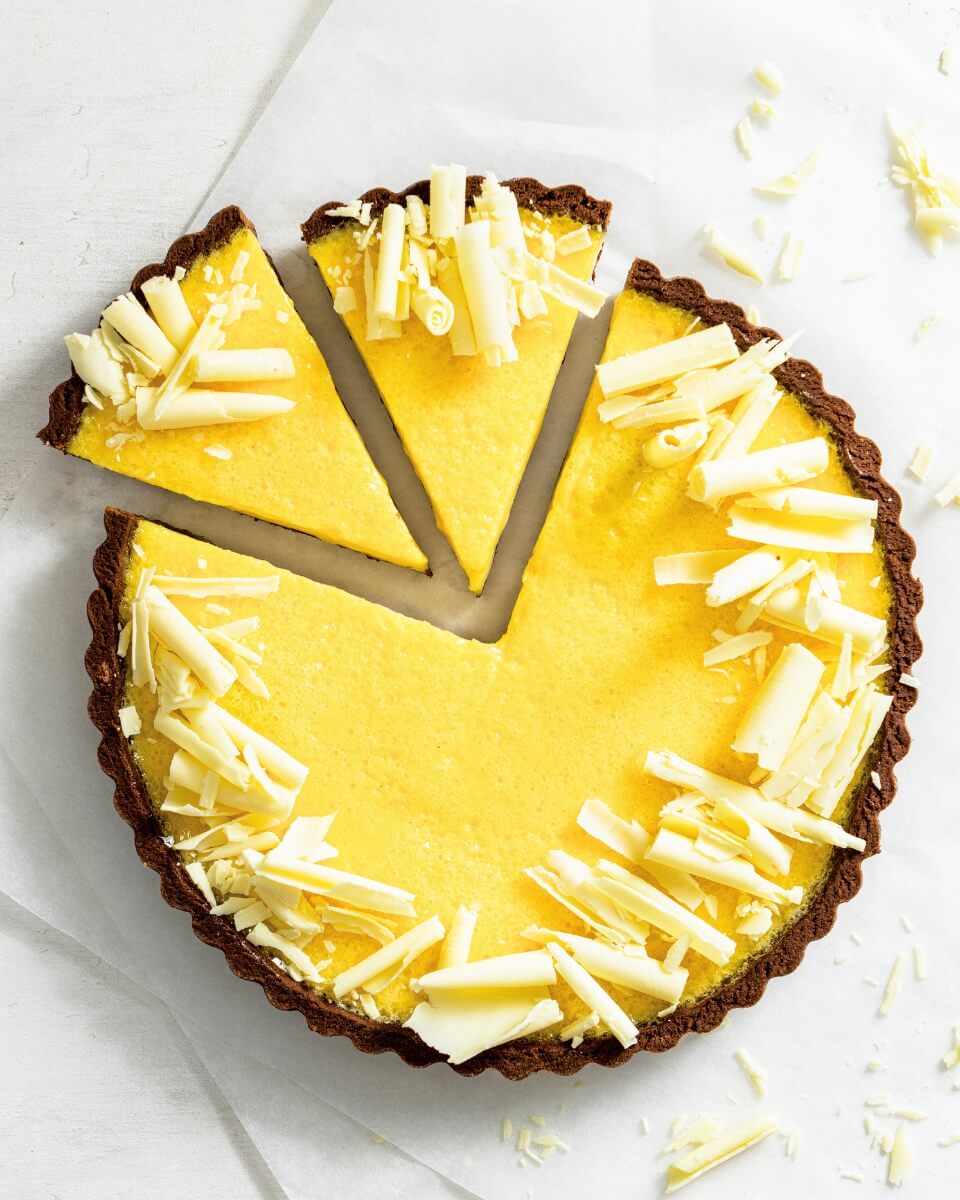 Chocolatier Steven Hodge explains why chocolate and passionfruit are complementary ingredients. “Passionfruit and chocolate share similar citrus and floral notes, making them a perfect pairing,” he writes. In his Chocolate and Passionfruit Tart, one of his standout creations, he layers textures and tastes: “I use the chocolate tart shell for its rich structural texture and the creamy passionfruit filling for balance. It adds a delicious bite of acidity and bitterness.”