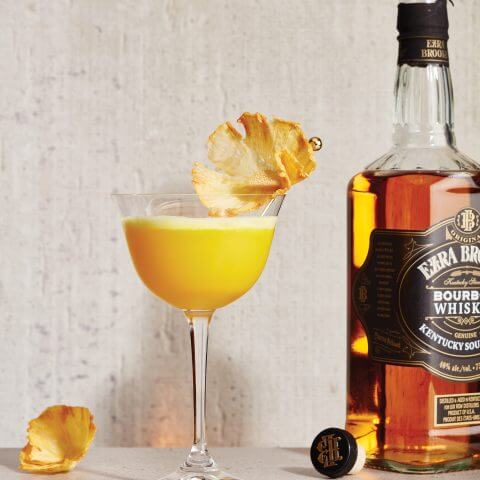 - Cocktail: Fill a cocktail shaker with ice; top with Golden Ginger Mix and Ezra Brooks Bourbon Whiskey. Fasten top and shake vigorously for 1 minute. Strain into a glass and top with pineapple flower (if using).