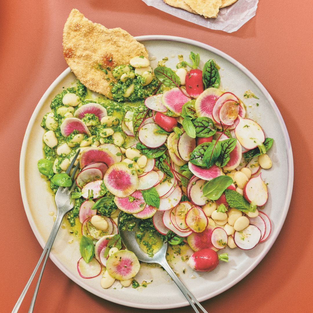 Spring Radish Salad With Butter Beans and Pesto A zippy radish greens pesto is a highlight of this vibrant salad.