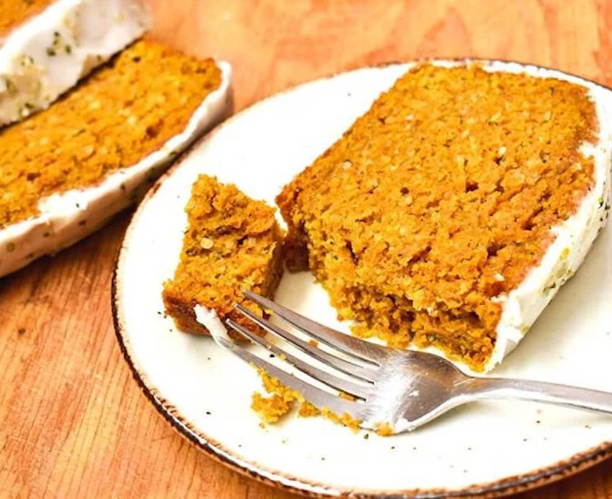 This pumpkin loaf is moist and flavourful, and topped with a sour cream glaze. The secret ingredient? Hemp hearts! They add a richness and slight nuttiness that takes this loaf to the next level.
