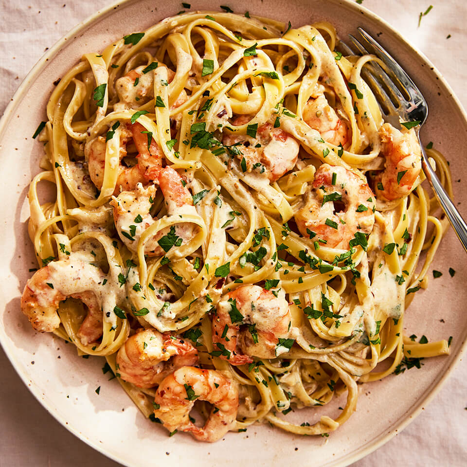 Natasha Kravchuk's recipe for an elevated fettucine alfredo featuring ingredients found in classic shrimp scampi.