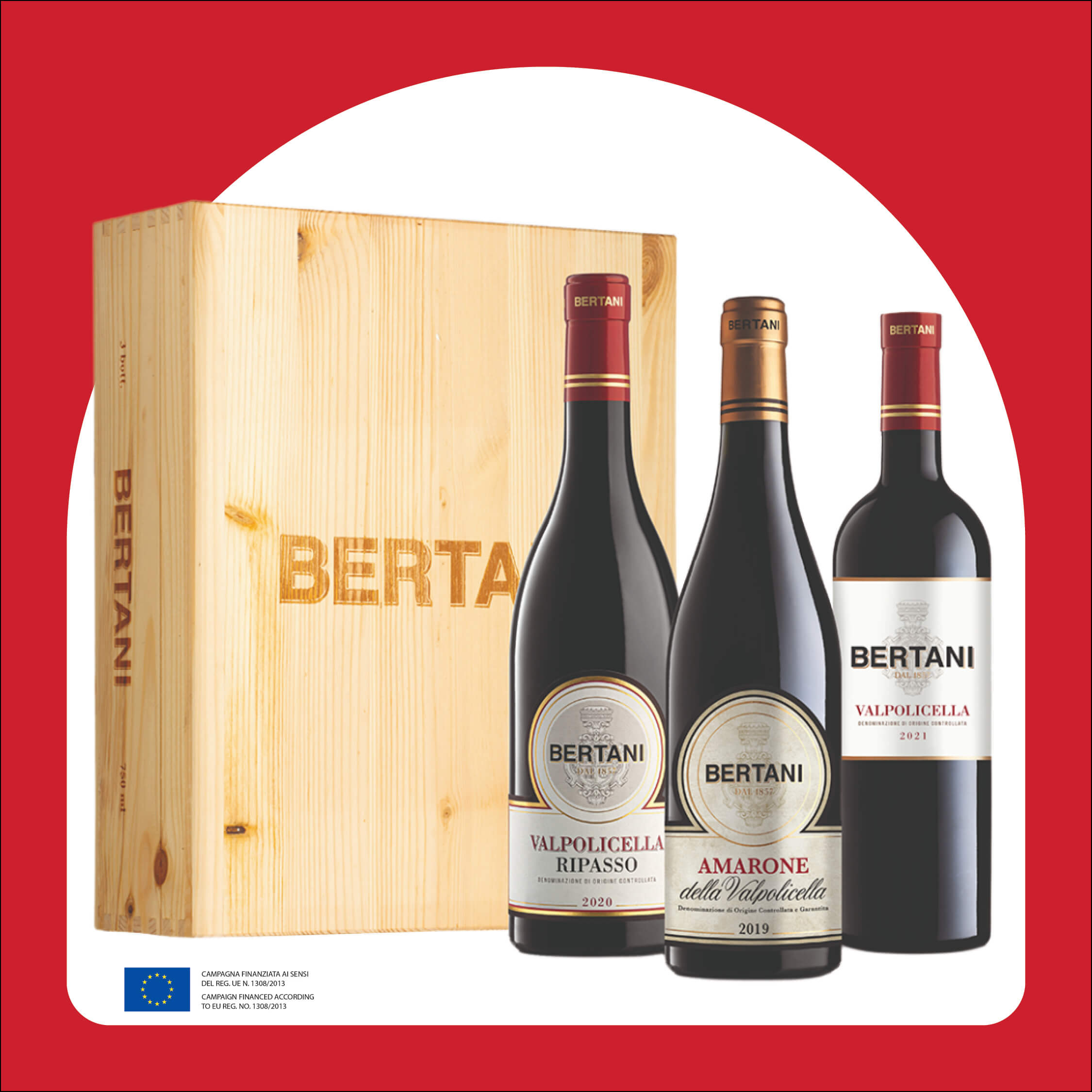 This gift pack includes the Bertani Valpolicella, Bertani Valpolicella Ripasso and Bertani Amarone della Valpolicella, making it the perfect gift for any host or wine lover.