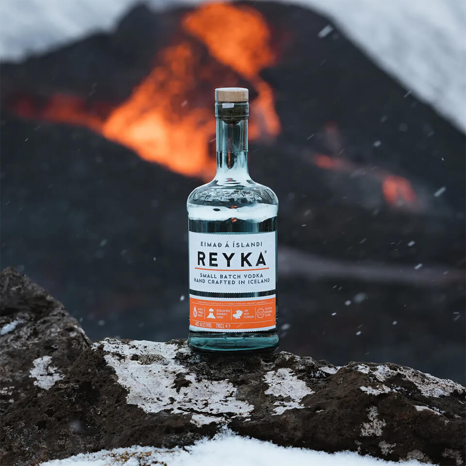 Reyka vodka is made in Bogarnes, Iceland, at a distillery powered entirely with renewable geothermal energy from underground volcanoes (the lava rock is also used for filtration). The water they use is glacial spring water, which runs through a 4,000 year old lava field. As the brand likes to say, “Skål (that means cheers) to that.”