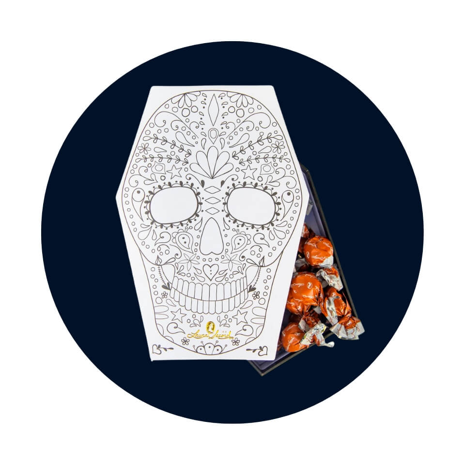 Laura Secord’s Signature Salted Caramel Chocolates are beloved by many, and can be purchased in a beautiful box decorated to look like a sugar skull.