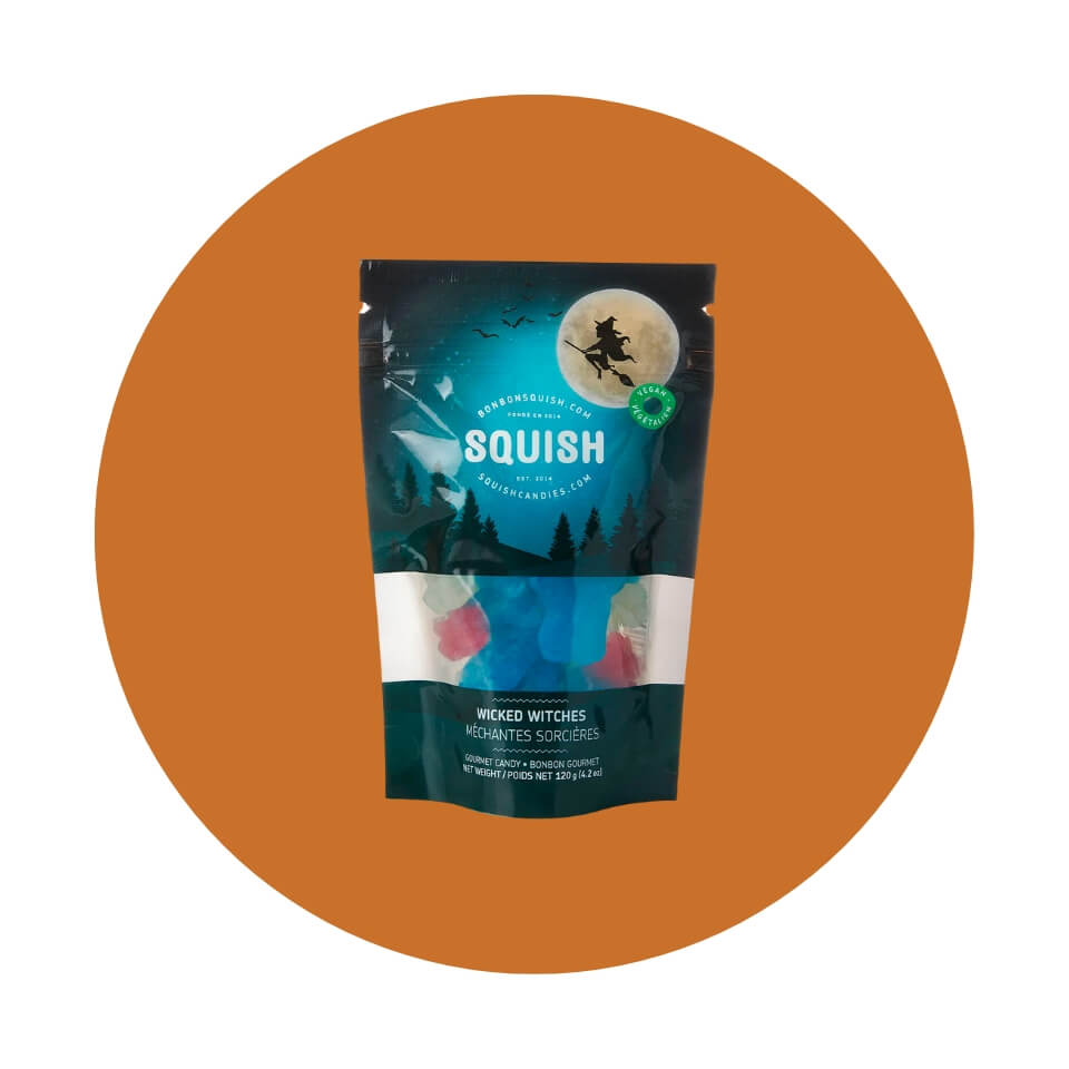 For a vegan Halloween, Squish’s gelatin-free wicked witch gummies are a must. They’re a tangy blue raspberry flavour, and available to purchase in a discounted 4-pack.