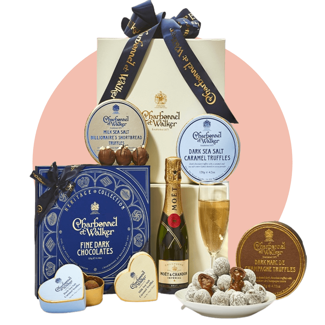 Treat your beau to the ultimate British Valentine’s Day hamper. Charbonnel et Walker’s For Him Hamper contains an array of dark chocolate and caramel truffles, along with a mini bottle of Moët.