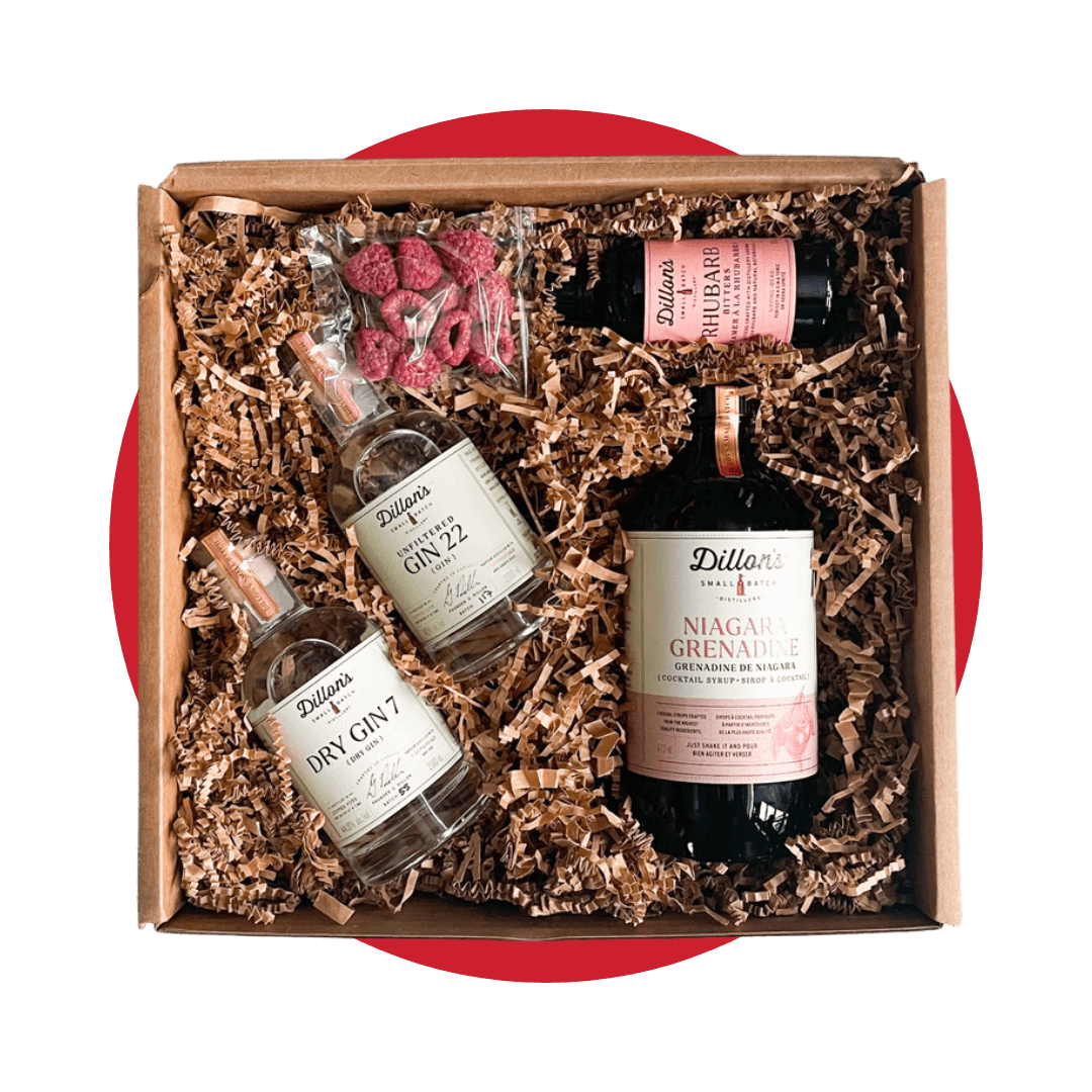 Make your move with mixology this year. Dillon’s Valentine Kit includes their locally-made Dry Gin 7, Unfiltered Gin 22, Niagara Grenadine Syrup and Rhubarb Bitters as well as dried raspberries for garnish.
